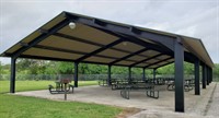 Soccer field, covered basketball court, a sand volleyball court, a .6 mile walking trail along with many swing sets sprinkled through out the park, a full size play center, BBQ grills through out with picnic tables under shade trees to watch the ducks come in for a landing on the small pond (No Swimming Please!) .